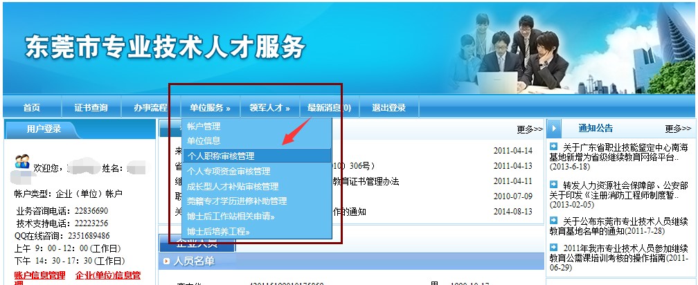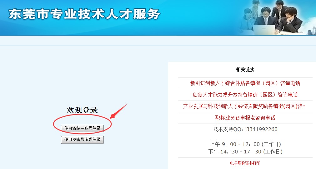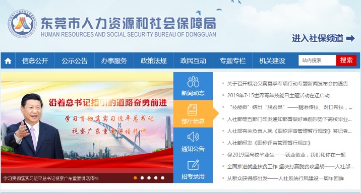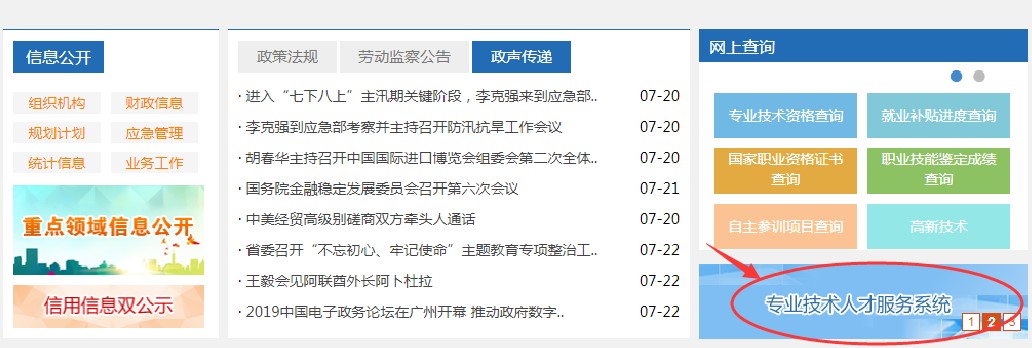二、注册账号:①访问“东莞市人力资源和社会保障局”官网(http://dghrss.dg.gov.cn/),在首页点击“专业技术人才服务系统”(以下简称系统),如下图: