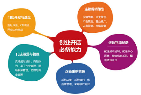 门店开发与选址:选址体系、CIS设计、开业庆典策划、 门店运营与管理:卖场规划设计、商品陈列、员工作业管理、现场服务管理、防损与安全管理 连锁采购管理:采购决策、采购谈判、供应商管理、采购绩效考评 连锁物流配送:配送成本控制、配送中心运营、物流信息系统、配送绩效考评 连锁促销策划:促销战略、公关策划、广告策划、营业推广、人员促销、网络促销 |